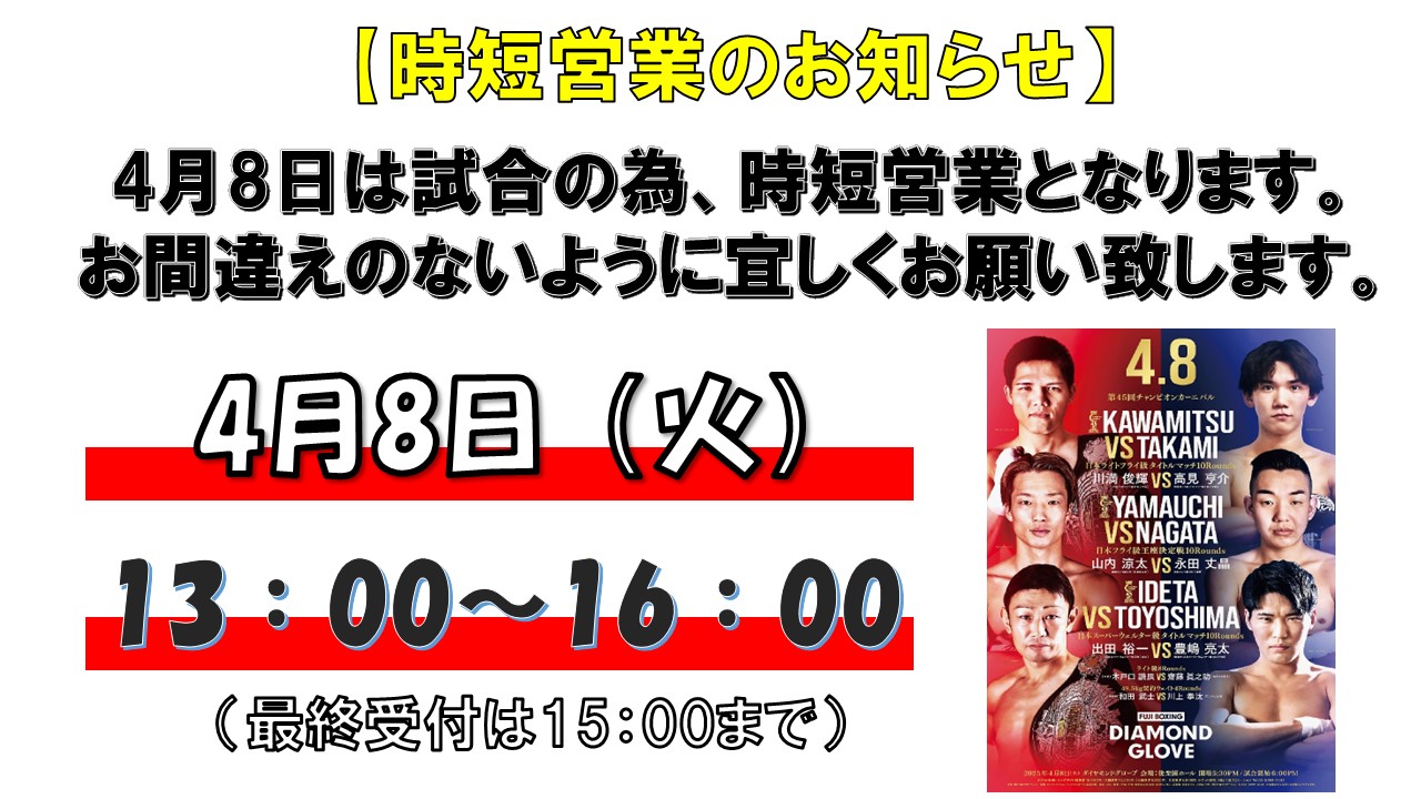 TOP > NEWS > 時短営業のお知らせ