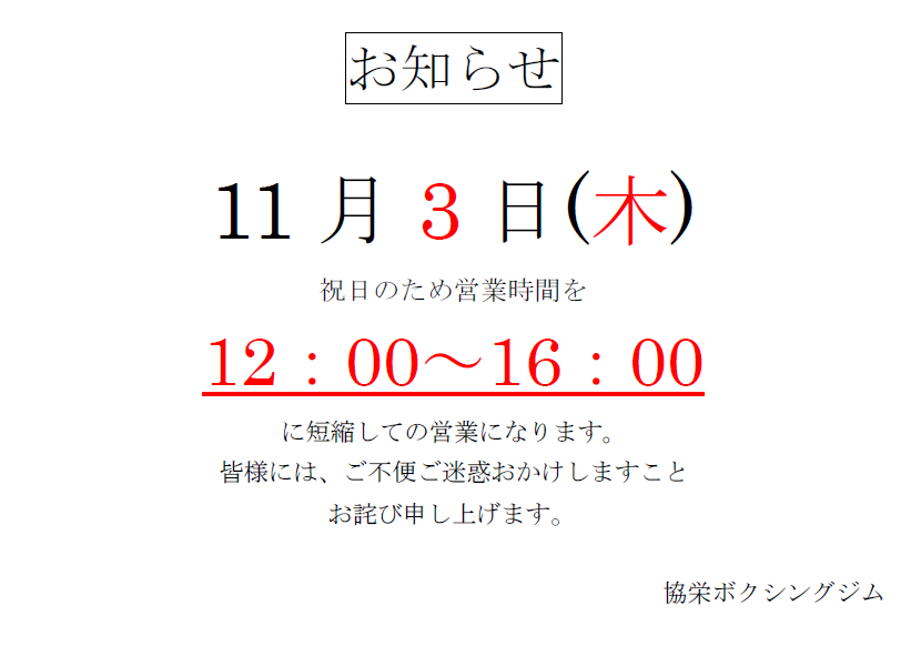 TOP > NEWS > 11月3日 ~祝日営業~