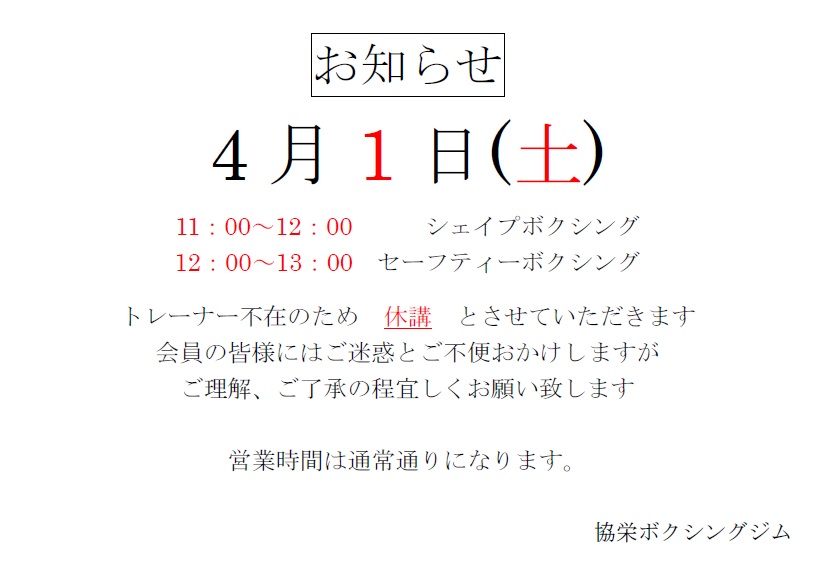 TOP > NEWS > ~4/1 お知らせ~